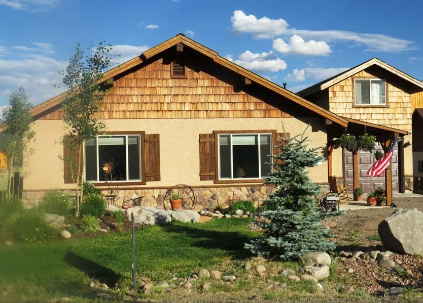 PRICE REDUCED! Beautiful custom home, 2547 SF, 5 bedrooms, 4 baths, 2 car attached garage. This home has 3 bedrooms on the main floor with two of those as master suites with their own full baths. An additional guest bathroom is also on this floor with the 4th full bath on the second floor along with the other two bedrooms. Optional use for the larger upstairs bedroom would be a second living area. This home has an open floor plan with large great room, wood pellet stove, and high vaulted ceilings. The kitchen has custom hickory cabinetry, granite tile, walk-in pantry, SS appliances, and eat-in bar. The informal dining room is adjacent the kitchen with a patio leading to the grilling patio. Nice big windows, covered porch, and patios really let you enjoy the panoramic mountain scenery. Newly landscaped yard with sprinkler system, new sod, and aspen and spruce trees. Two Rinnai hot water heaters, propane radiant in-floor heating on main floor. Maintenance free stucco with rock and shake shingle accents. Enjoy the fire pit on the outdoor patio. Lots of extras include whirlpool tub, walk-in closet, copper sinks, and wainscoting. Large garage two car attached garage include workshop space. Offered by Suzy Gilbert Barnett, listing agent 719-873-1700.