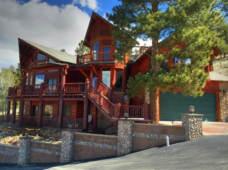 Extraordinary home with stunning 360 degree mountain views! This multilevel home is located on a spacious and wooded two acres bordering the National Forest. The subdivision has paved roads, public land access, a common area fishing pond, underground utilities, and can be accessed year around! There are a total of four bedrooms (one is currently being used as an office). The walk out basement level has two spacious guest rooms and a large complete kitchen, two bathrooms, a living room, and a beautiful circular library! On the main floor enter into a large great room with a two story rock fireplace and octagonal shaped formal dining room with beautiful full log beam open construction. The open floor plan also includes a gourmet kitchen with granite counter-tops and expansive functional breakfast bar. Just around the corner is a very spacious master suite with private patio access, and two large walk in closets. The master bathroom includes double sinks, Jacuzzi tub, walk in shower, and separate water closet. There are many intriguing bonus and observation turrets creating added charm and even more views of the surrounding mountains! The home has an elevator for added ease! The home is completely constructed with SIP (Structural Insulated Panels), considered by many builders to be the preferred building solution for the 21st century. This building system is structurally superior, thermally more efficient and cost saving over other building methods such as stick framing. There are numerous covered patios on all sides of the home in addition to the beautiful front deck, allowing for outdoor entertaining at any time of year or in any weather! The home has a complete and monitored alarm system! This upscale subdivision is unique in that it DOES allow owners to perform short term vacation rentals which adds to the homes attraction, creating added income opportunities when the home isnt being used by the owners. The immediate area boasts of world class powder skiing, a championship 18 hole golf course, gold medal trout fishing in the Rio Grande River and numerous area reservoirs, hundreds of miles of hiking/biking, four wheeling, and snowmobiling trails, and trophy elk, mule deer, and black bear hunting! Dont miss this one!
