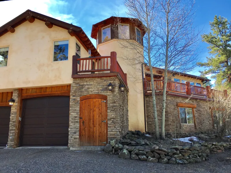 This could be your very own Castle in the Pines! Come home to this beauty nestled in the pine and aspen forests of South Fork, Colorado. This beautiful, 2 story, 2500 sq. ft. home has more to offer than meets the eye. With a diverse layout of archways, hallways, and spiral staircases, you can be sure there is something special and inviting around every corner in this home. Beautiful high ceilings in the main entry lead to a very comfortable living room with large windows facing west. As you wind your way through the hallways and archways, you will find 2 bedrooms on the main level that share 1 bathroom, and the master bedroom which has beautiful views of the South Fork valley. The master bath is quite a treat with it's own walk in tub! As you make your way to the north side of the home, you will find 2 spiral staircases. One leads up to a turret/sitting room, where you can enjoy panorami...