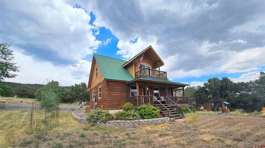 Dee Plucinski, Steffens and Company Realty, Inc, C: 719-873-5605, , Settle into mountain life with this cozy and character-filled 2-bedroom, 2-bathroom cabin on 1.3 acres in scenic South Fork, Colorado. Located just 1 mile from the Rio Grande River, 2 miles from the Rio Grande Club Golf Course, and 19 miles from Wolf Creek Ski Area—this is your home base for year-round adventure. Built in 1995 and sitting at an elevation of approximately 8,200 feet, the home features classic tongue-and-groove ceilings, warm wood finishes, and solid pine doors throughout. A pellet stove anchors the living room, adding ambiance and comfort on snowy winter evenings. Vaulted ceilings and natural textures bring the true mountain-cabin feel, while big windows and a sliding glass door let in natural light and frame the incredible views. The main home offers 1,100 square feet of well-planned living space, including a charming loft that opens onto a private balcony—perfect for morning coffee or stargazing under the clear Colorado sky. The bedrooms are welcoming and well-sized, and a washer/dryer combo unit adds convenience. Many furnishings are negotiable, making this a turnkey option for vacation rental income or personal use. Step outside to enjoy the spacious wraparound deck and pergola-covered seating area—ideal for entertaining or soaking in the peace and quiet of your mountain retreat. A detached two-car garage includes a finished 384-square-foot bonus room above that makes a great guest suite, playroom, or hobby space. A separate storage shed adds even more versatility. The property is equipped with a strong 15-gallon-per-minute well, septic system, and high-speed fiber optic internet. County-maintained roads provide easy year-round access, and with no HOA or covenants, you’ll enjoy the freedom to live, rent, or recreate however you choose. Vacation rentals are allowed with a County Permit. Whether you're seeking a peaceful retreat, an investment opportunity, or a full-time mountain home, this South Fork cabin checks all the boxes—with rustic charm, modern comforts, and mountain views that never get old.