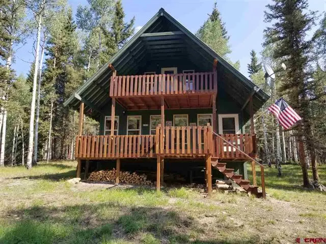 A creek runs through it. This gem of a mountain property extends over the seasonal running Spring Creek. An off grid paradise offering seasonal escape or year round living. Wake up to mountain views and the fresh mountain air every morning. The cabin has a lower deck and a large upper balcon. Inside the front door, you will find a lovely kitchen with plenty of counter space and sit at bar. A lower bedroom and 3/4 bath with washing machine are located for first floor access. Warm up to the antique potbelly stove or wall furnace. Upstairs provides two more bedrooms with a 1/2 bath and a wall of closet space. Solar panels have been added for additional power to the already existing generator. Ride, drive, or snomobile right from you cabin depending on the season. Year round access can be arranged. Properties like this do not come along often. Actual property is marked southwest of Monte Vista. Call today.