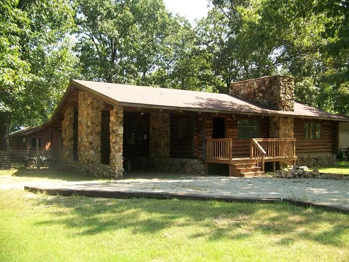 Log home with current river access. Home offers 2 or 3 bedrooms, 1 bath, open kitchen/ livingroom floor plan, hardwood flooring throughout, large stone fireplace, vaulted ceiling with log beams. Outside offers attached carport, front and back deck, shop building with concrete floor, electric and insulated. Also access to Current River boat landing and swimming area.