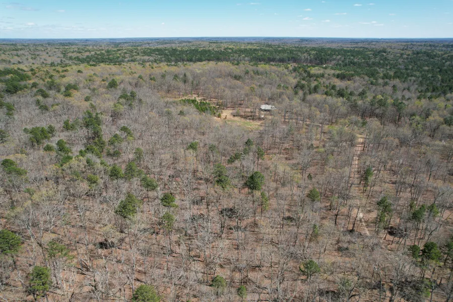 The driveway brings you into a large cleared area that could easily be cleared fully to allow for a pasture area or food plot. Here is where you will find the beginnings of a home or cabin. This uniquely designed structure is framed out and has plumping and electrical installed, but still needs to be completed. There is an octagonal portion that appears to be a covered porch area but could be enclosed to add to the square footage if desired. This appears to be a 1 bedroom, kitchen, living, and dining layout, to be finished out however you see fit. The building is sitting on a concrete slab. There is no electrical ran to the building yet, but there is electrical service available at the county road.