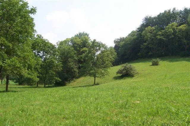 Beautiful piece of land with hay meadows, hill top pasture, small farm pond, creek, and woods.