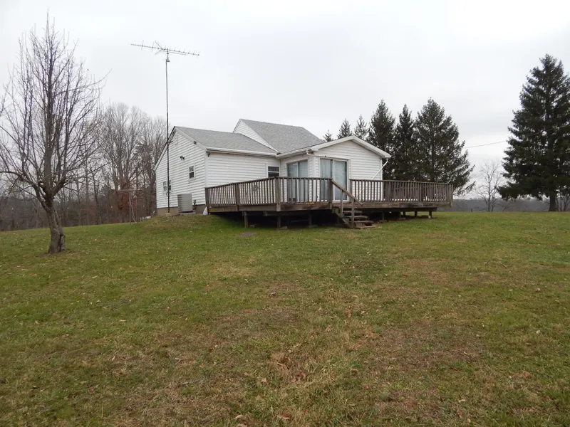The farmhouse has 3 bedrooms, 1 bath and a 2 car garage and Free Gas (APO)! There's also a separate efficiency apartment and another 1 Bedroom apartment, so you could have rental income or even house your farm hands. If farming is your dream, there Is fenced pasture and 2 ponds. The ridge-top setting gives you breath-taking views that stretch for miles, welcoming the changing and colorful seasons! Storing your equipment out of the weather will not be a problem with the concrete floor, 3 stall heated garage/workshop for tinkering and a 40 steel freight container for extra storage. Call for details!
