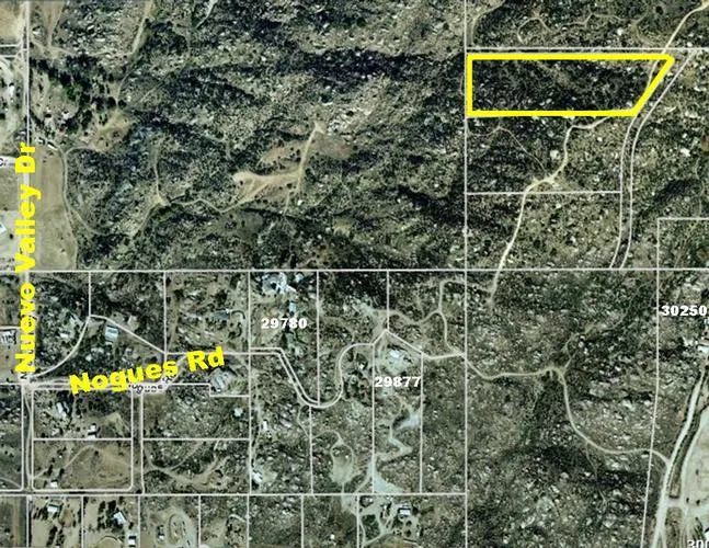 Driving Directions: From I-215 take the CA-74 W exit toward 4th St. Turn sharp left onto Redlands Ave. Turn right on E San Jacinto. Turn right on Corbett Ln. Corbett Ln becomes Nuevo Valley Dr. Turn left on Nogues Rd. Drive up into the hills on McIntyre. Parcel is on the left. Located a block or two up the hill from the Full Gospel Fasting Prayer Church. Take an aer...