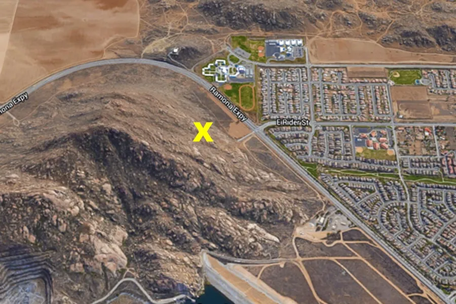 Driving Directions: From I-215 take the Ramona Expressway east. Turn left on E Rider St. The parcel starts where E Rider ends and slopes uphill from there. Take the aerial map.