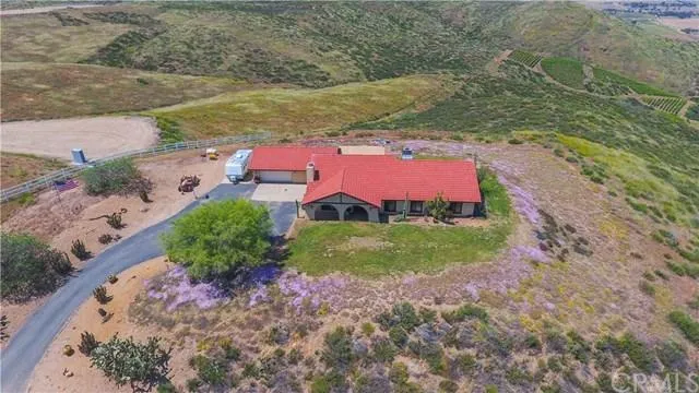 *views views views* welcome home to 47050 de portola with 11.03 acres of privacy gorgeous panoramic views of local mountains. Adjacent neighbors have established vineyards, that could also be developed with this property. Upon entering you are greeted to the living room with a fireplace, follow through to the large open dining room. A gourmet kitchen offers: custom brentwood cabinets with custom cabinet lighting ; aga legacy retro range, separate broiler, conventional, convection, & warming oven; miele coffee maker; sub zero refrigerator with a custom mural; granite counter tops; custom tile back splash above the stove; a massive island with a prep sink, 2 drawer refrigerators, built in wine rack. The family room is highlighted with a fireplace, built-in cabinets and access to the outdoor covered patio. Making your way down the hallway you will find 3 secondary bedrooms, a secondary bathroom with dual sinks, re-glazed counter top, storage cabinets, and custom designed stain glass window. An over sized master suite includes a walk-in closet, master bathroom with his and her sinks, re-glazed counter tops. On the patio enjoy your morning coffee, entertain family or guests or bask in the sunset. The 6 horse mare motel barn is equipped with heavy stall m