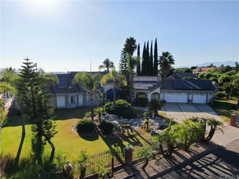 This unique custom home is situated on an amazing 1.05 acre lot featuring a pool and spa, orange grove, and an additional detached garage. A stately office/bedroom opens up off of the foyer. As you continue down the hall you'll find 2 spacious bedrooms and a full, hall bath with dual sinks. Bedroom number two has a built in Murphy bed, which makes the room extremely versatile. The enormous master suite features a walk in closet, a retreat with fireplace, and French doors that open up to the pool and spa area outside. The master bath features a large soaking tub, shower, dual sinks, and a separate water closet. The palatial living room with high beamed ceilings, fireplace, and wet bar make this home an entertainer's delight! The large kitchen has ample counter space and cupboards for storage, center island for food prep, additional walk in pantry, breakfast bar and adjacent dining nook. The formal dining room opens up to a formal sitting room. In the backyard, stairs lead down from the gated pool area to the orange grove and detached garage, that could be converted to an ADU/man cave/game room. There's plenty of space to plant your own vegetable garden! On the side yard, there's a gorgeous gazebo set amongst fig and palm trees. With the 3 car garage, large driveway, & the additional detached 2 car garage your family will have plenty of space for parking. This is an extraordinary home!!((CLICK ON THE VIRTUAL TOUR)) and step inside to your new home!