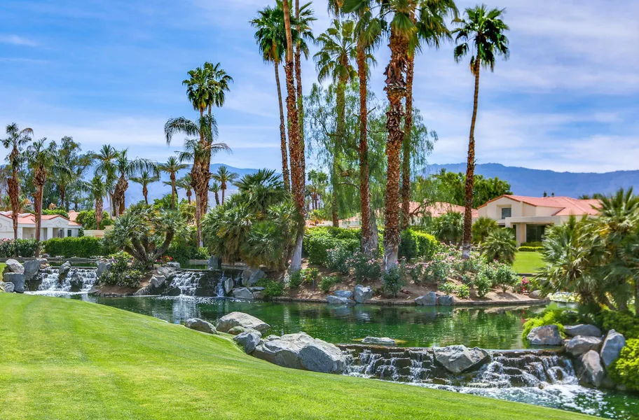 A stunning remodeled and renovated Hazeltine plan in Desert Horizons C.C. The open kitchen now allows an abundance of light into the entire home. The marble flooring shines from the moment you enter the home. The interior location of this property affords you privacy and peacefulness while overlooking the ponds and waterfalls. With almost 3,400 sq. feet. this home has 3 bedroom suites, 3.5 baths in the main house plus a detached casita. Designer touches are throughout this charming home.