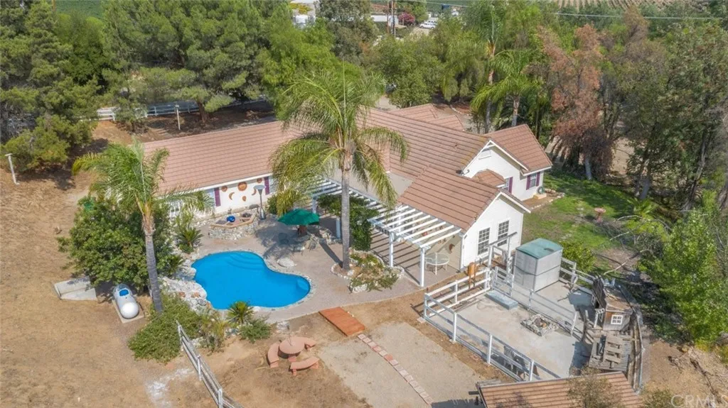 Welcome Home to the Acclaimed De Portola Wine Trail, Located in Temecula Wine Country. You will Enjoy the Picturesque Views of the Valley from the Property and the 9 Unique De Portola Wine Trail Wineries that Continue to Nestle Themselves Amid the Rolling Hills. This Privately Gated Craftsman Estate Pool & RV Home Boasts 2,951 Sq. Ft., 3 bedrooms, 2 Baths, Detached 3 Car Garage and is Situated on 2.18 Acres, which is Suitable to Add a Private Vineyard, Guest House and Equestrian Facilities Upon Entering the Home Youll Love the High Ceilings and will Experience an Open Floor Plan, Dining Room w/Designer Ceiling Fan with Stained Glass Lighting, Designer Gourmet Kitchen, Family Room w/Brick Wood Burning Fireplace and Chandelier, Bar & Recreation Area and Living Room. The Spacious Master Bedroom w/Master Bath and 2 other Large Bedrooms w/Shared Bath complete the Space. Amazing Designer Chefs Kitchen with William Ohs Custom Luxury Kitchen Cabinetry w/Stunning Cherry Wood Soft Close Cabinets w/Pull Outs, Prep Workstations, Lazy Susan, Mixer Stand, Large Pantry, Bianco Romano Granite Island & Counters, Stunning Chandelier, Tumbled Travertine Backsplash, Thermador Oven w/6 burners, Wok Station, Warming Drawer, Pot Filler Faucet, Amazing Tumbled Marble Hood with Beautiful Hand Painted Wine Country Scene by Paul Roberts above Stove, Built-In Jenn-Air Refrigerator, Dishwasher and 2 Kitchen Stainless Steel Sinks. Property is well Equipped for a Large RV and all your other Toys. Front Yard has Various Trees for Privacy with a Large Water Fountain and a Roundabout for Easy Access In & Out of the Estate. Backyard is an Entertainers Dream w/Pool & BBQ area, misc. Fruit Trees, Western Themed Buildings, which is great for storage and more. Only minutes to Temecula, Freeways, Hospitals, Shopping, Entertainment and more. Low Tax Area and No HOA.
