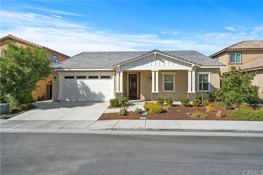 Highly desirable 4 bedroom SINGLE STORY home with tons of upgrades built in 2018 right next to The Links Golf Course in the Ballpark District of Summerly! From the cozy front porch, you'll walk into the wide hallway which will take you to the dining room and family room with a fireplace...showcasing the open-concept floorplan. Kitchen features granite counter tops, stainless steel appliances, double sinks at island with breakfast bar, plenty of cabinets plus a walk-in pantry, and a breakfast nook. Primary bedroom is very spacious with lots of natural light. Primary en suite has separate shower & tub, dual sinks with plenty of vanity space, and a large walk-in closet with built-in shelves. Down the hallway, you will see 3 more spacious bedrooms (1 with walk-in closet) and main bathroom with double sinks. Powder room for your guest and laundry room is at the hallway (with storage cabinets) going into the garage. Garage has a deep semi-tandem area which can be used as a workshop and/or storage. Step outside to your freshly landscaped private "pool-sized" backyard with concrete area perfect for entertaining and/or relaxing...no neighbors directly behind you to enjoy the firework show from Storm Stadium!!! Upgrades include: custom glass front door, plantation shutters with window casings, custom paint, recessed lights, elegant laminate flooring, fireplace, epoxy flooring in garage, tankless water heater, and much more to mention!!! Summerly is a master planned community that features 3 parks with kid's splash zone and fire pits, junior Olympic pool, resort-style pool, clubhouse/meeting room, half basketball court, hiking trails and more! Located across the street from Storm Stadium, 18 hole golf course (The Links at Summerly), brand new city park (with skating zone, baseball & soccer fields, dog park, picnic areas, trails, etc), and is very close to the lake, shopping, restaurants, entertainment, and 15 FWY!!!