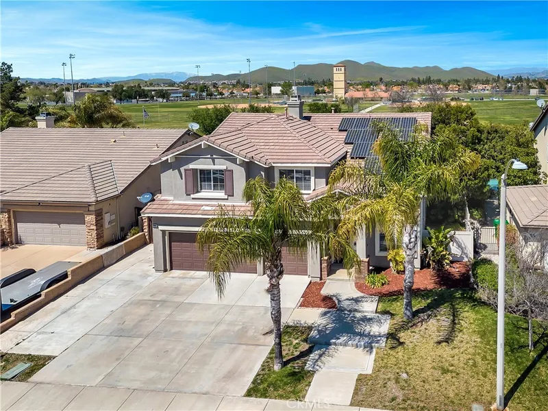 This turn key ready home is located in the desirable Abby Lane neighborhood. This property features, 5 Bedrooms and 3 bathrooms! Large Great Room upstairs ,A Custom built-in Desk and Work area in the loft. Almost 3000 Square Feet of Living Space, Wired for Surround Sound, Recessed Lights, Custom Stamped Cement Back Patio, perfect for entertaining. Master Suite has a Huge Bathroom and Ginormous Walk-in Closet! Open Family Room With Cozy Fireplace is off Gourmet Kitchen that has a Oversized Island and the Kitchen has Tons of Cabinet Space! Double Pane custom Windows throughout, 3 Car Garage With Extra Driveway Parking, Open Views from the back of the house. Backs up to the College field makes it very private and open feeling. RV or Boat Parking and much more !No HOA fees. Solar PAID!! Walking distance to parks, schools and local library. 30 minutes from Temecula Vinyards. This home is a must see in a perfect location. Schedule showing now.