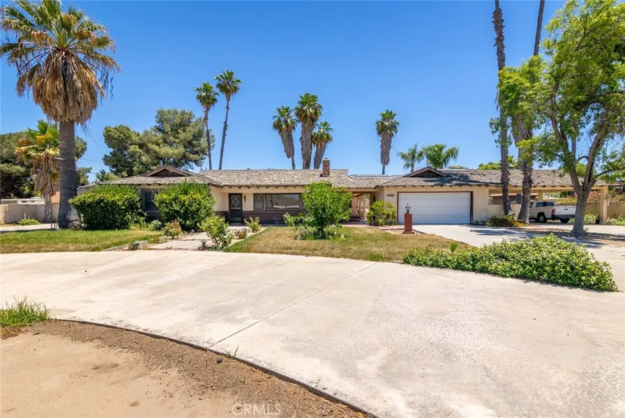 Welcome home to this vintage charmer! This home welcomes you through the 3 gated entries with circular driveway. This home features over 2200 square feet of living space with 3 bedrooms and 2 baths. Upon entry you will find a large formal living room with expansive wood burning fireplace. Entering into the country kitchen you will find ample counter space with breakfast bar, kitchen nook area and adjoining formal dining room. Tons of natural light with multiple french doors leading to the patio take you to the large family room with another large fireplace and wet-bar with pass-thru window to the serve your guests on the patio. On the opposite side of the home you have your primary bedroom with french doors leading to the backyard, 2 generously sized bedroom and guest bath with original vintage tiles. Outside offers a gas fire pit, beautiful spanish fountain and brick patio ideal for entertaining. Backyard is a blank slate and ready for your final touches. You also have a workshop and back storage area. To complete this package you have a 2 car garage with large pantry, covered carport and outside office area completely seprate with its own entrance and drive way. This home has plenty of room for RV parking and all the toys! Bring your toolbelt and imagination and this home is ready for you to make it your own!