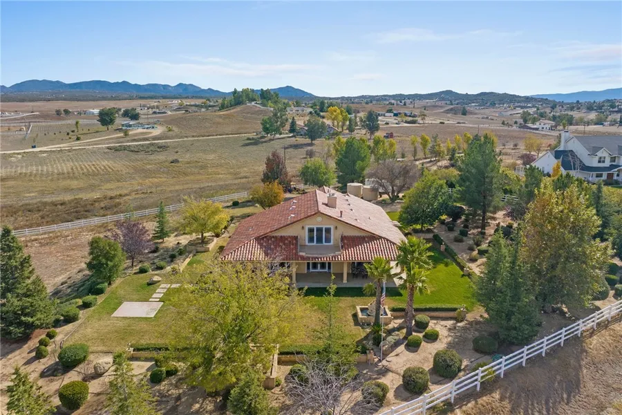 Welcome home to this exquisitely crafted custom build located in the gated community of Lake Riverside Estates. This property sits on 2.61 acres of land, providing you with breathtaking views of the lake and mountains. The house features an open-concept, single-story floor plan, with a second-story loft that could serve as a fourth bedroom, complete with vaulted ceilings, a stone fireplace, and sliding glass doors that open to a balcony overlooking the lake. This magnificent home has been constructed with the highest level of quality and attention to detail. From the grand foyer, custom alder wood arched doors, and elegant archways, to the energy-efficient 2'x6' walls with R19 insulation, custom insulated French-doors, and a clay tile roof, this home is truly a masterpiece. Other features include plantation shutters, custom retractable shades, three stone fireplaces, crown molding, surround sound, custom tile floors, beautiful granite slab counters, custom cabinetry with undermount lighting, and ironwork throughout the entire home. The kitchen boasts stainless steel appliances, double ovens with a warming drawer, an abundance of cabinet space, custom cabinetry, an island with seating and a built-in range with an indoor grill, instant hot water, a corner pantry, and a built-in wine rack. The family room is equipped with a floor-to-ceiling, wood-burning, stone fireplace, and three sets of French doors leading out to the sprawling backyard. The spacious master bedroom features vaulted ceilings, upper display lighting, beautiful French doors with lake views, and a luxurious master bath. The master bathroom boasts two separate vanities, a deep, jetted soaking tub under an antique Waterford Crystal Chandelier, a large walk-in shower with custom tile, and three shower heads. The master closet has built-in storage and direct access to the laundry room complete with upper and lower cabinets, a washer and dryer, and a utility sink. The two secondary bedrooms each have views of the courtyard or garden. The property is southeast-facing, easily accessible from the 371, close to Cahuilla Casino, and just 30 minutes away from Temecula's Wine Country.