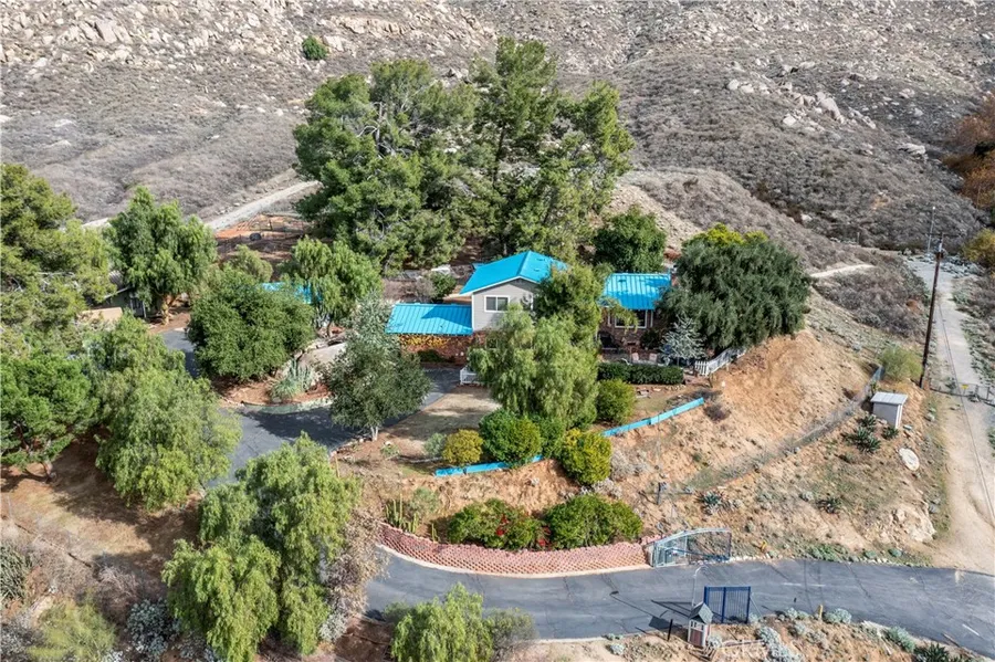 Introducing a truly exceptional property surrounded by the breathtaking Box Springs Mountain Preserve. This oasis was once a backdrop for famed Hollywood cinematographer and Riverside native, Ken Middleham. Time stands still in his projection room, theater, darkroom and workshop. This unique home is currently owned by an artist and has been an incredible canvas for creativity and self-expression. This home has been lovingly maintained by only two owners over its 60-year existence. This remarkable gated retreat boasts privacy and breathtaking views on a sprawling one-acre property. The layout of the 3523 square foot multi-level floorplan is ideal for multigenerational living, affording everyone a sense of privacy. The original roof was recently replaced with a standing seam metal roof offering practical durability and aesthetic appeal. Other features and improvements include an updated kitchen, a newer A/C and heat pump, updated windows and tons of built-ins throughout. The picturesque landscape is adorned with a vegetable garden and a variety of citrus and fruit trees. The brick front porch is an ideal location for Spring/Summer alfresco dining by the serene koi pond or for crisp Fall/Winter nights by the crackling firepit. There is plenty of storage and room for toys, as well as accommodations for occasional overnight guests. In biking distance of UCR and Hunter Park Metrolink Station. Additionally it is a short drive to Downtown Riverside and freeway access. Don't miss this opportunity to own a one-of-a-kind property in Riverside.