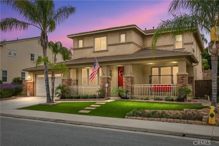 Beautiful upgraded home in Fairway Canyon which boasts 5 bedrooms, 3 baths, and a large, low maintenance lot over 10,000 square feet. The SOLAR is paid for which is a HUGE bonus! As you approach the home you will notice artificial turf in the front yard which creates a beautiful green, constant landscape. In addition, the back yard is also adorned with artificial turf. As you enter the home, the formal living and dining rooms are waiting to entertain your guests. The kitchen has new stainless steel appliances, granite counters galore, a large walk in pantry with adjoining butler pantry. The kitchen opens to the family room and a fireplace included. The home has custom paint, window blinds, 4 bedrooms upstairs including the primary suite. There is a balcony off the primary suite for quiet outdoor space overlooking the beautifully terraced backyard which includes a gazebo, three raised irrigated planting beds for your favorite plants or vegetables. The sellers have also installed two new HVAC systems along with the paid solar. The garage has 3 parking spaces , epoxy flooring, and suspended racks for your easy storage. Don't miss this beautiful home. Your buyers won't be disappointed. Close to freeways, golf, shopping, schools, parks, and more.