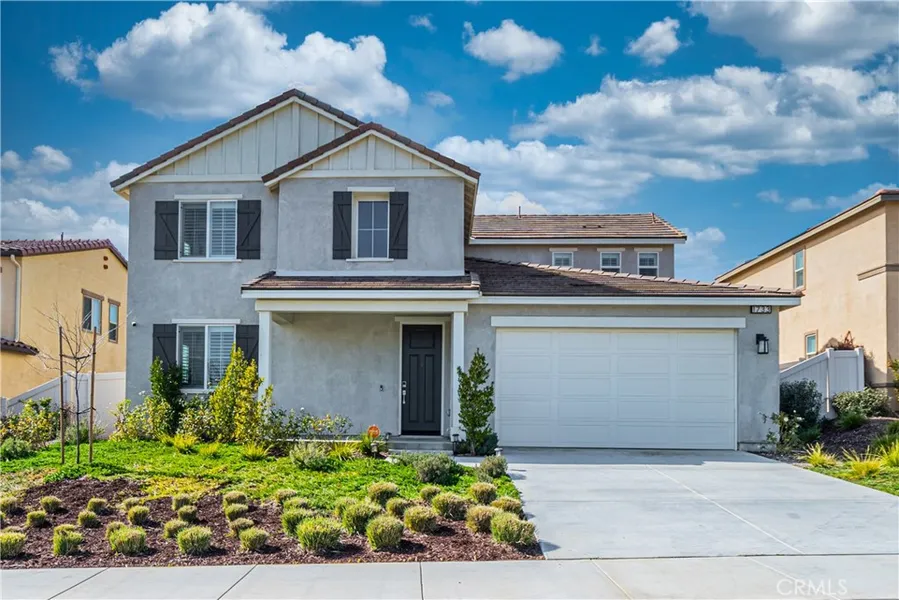 Experience unparalleled luxury living in this two-story Atwell home nestled in Banning, CA. This beautiful home has 4 bedrooms, 3 bathrooms, and an array of amenities including pools, tot lots, dog parks, hiking trails and builder is likely to have a pickle ball court coming soon. From the spacious kitchen with stainless steel appliances such as dishwasher, stove with overhead microwave/fan combo to the open concept living area perfect for entertaining. Enjoy panoramic views from this gorgeous view-lot of a scenic nature aesthetic; prepare to wind down in the evenings listening to the calming water of the immediate outdoor oasis. This home boast numerous upgrades throughout including flooring, upgraded lighting, cabinets, exceptional care and attention was given to ensure a flow throughout the home. There is a bedroom and full bath with a shower/tub combo on the first floor of this functional home. Do not miss the opportunity to tour this Atwell Horizon home as they are completely sold out of these specific models (Horizon, Plan 2). Come take a look, fall in love and prepare your move to call this your new home.