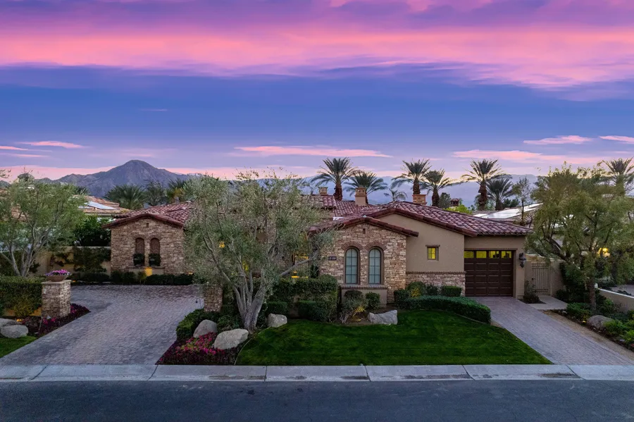 Seller Financing Available! Experience luxury living at its finest in this exquisite Indian Wells residence. In the prestigious Toscana Country Club community, this home boasts unparalleled sophistication and comfort. Revel at the beauty of the spectacular southern mountain views that unfold before you, creating a picturesque backdrop for everyday life. The elevated lot positions you above the golf course, ensuring privacy and tranquility. With over 5400 square feet of meticulously designed living space on over 1/3 acre, this residence offers grandeur and spaciousness.Discover the epitome of modern living. Fleetwood doors seamlessly connect indoor and outdoor spaces, inviting natural light to dance across the meticulously curated interiors. The heart of the home is a well-equipped gym, providing a haven for health enthusiasts. The attached 2-room casita is a luxurious retreat.Enjoy the e...
