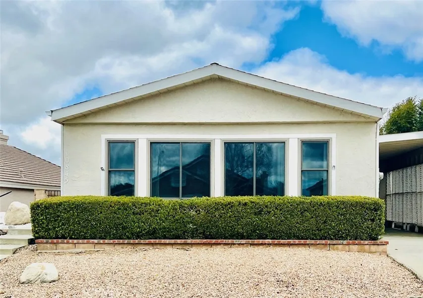 Welcome to this 2 Bedroom + 2 Bathroom manufactured home located in the gated 55+ Highland Springs Country Club Community. A spacious formal living and dining room welcome visitors with a wall of dual pane windows and built-in hutch equipped with ambient lighting. The newer kitchen opens up to the family room with a fireplace and slider door leading to the covered front porch. The primary bedroom has mirrored closet doors and an ensuite bathroom with a separate shower and tub. The second bedroom has mirrored closet doors and has direct access to the second ¾ bathroom. This home also has a storage shed/little workshop for extra space or to exercise creativity. Notable features of this home are the renovated kitchen, dual pane windows by Andersen, built-in hutch in the formal living/dining room and storage/workroom. The kitchen renovation includes Corian countertops, mosaic tile backsplash, garbage disposal, recessed lighting and stainless-steel oven and dishwasher. All windows have blinds or curtains. The yard is easy to maintain as much of the lot is covered in landscaping rock and shrubs. The monthly HOA is $200 and includes access to the pool and spa, pickleball and tennis courts, golf course as well as the clubhouse. Close enough to freeways, restaurants, shopping and festivals (at 123 Farm right next door) but just far enough from the hustle and bustle to enjoy the peaceful countryside and mountain views.