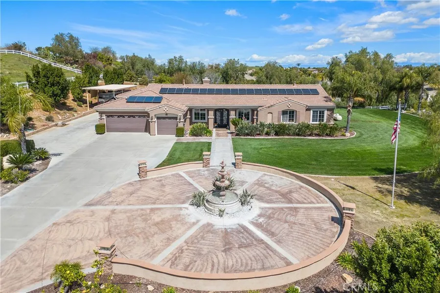 Welcome to 17452 Asturian Street, Perris - a visionary residence that redefines modern comfort and luxury. This impeccable estate is a world unto itself, where every square inch speaks of sophistication and thoughtful detail. At its heart, the main house boasts 3 lavish bedrooms plus a versatile office space, designed to cater to your dynamic lifestyle. Three powder rooms embody elegance, ensuring comfort for residents and guests alike. State-of-the-art conveniences such as an RV parking with dump station, an on-demand water heater, and a standby generator serving both dwellings, underscore the property's modern edge. With additional entrance and parking near the back of the lot for all of your toys, cars, RV's, or access to your entire lot! Foodies and cooks alike will relish in the gourmet kitchen, a true culinary playground featuring a wine fridge, double oven, and a welcoming coffee nook for your morning rituals. Entertaining outdoors is reimagined with spacious alumawood patios, complete with an outdoor bbq and cooking area, poised to host your most memorable events. The grounds unfold to reveal a tranquil pool beside a generous 10-person spa, accompanied by an outdoor changing room and bathroom for seamless alfresco leisure. Dual AC units ensure a comfortable climate year-round, while a cozy outdoor wood-burning fireplace infuses the space with warmth. The invitation to tranquility extends to the 2 bedroom casita, complete with a full kitchen and laundry hook-ups - a private retreat that promises comfort for guests or potential rental income. Seamless connectivity is epitomized by the electric gate entrance, while eco-consciousness is demonstrated by solar panels and well-sourced irrigation, nurturing the 30 flourishing avocado trees and an assortment of 20 other fruit trees that include orange, lemon, lime, apple, cherry, peach, nectarine, fig, and grape varieties. Children and adults alike will be delighted by the in-ground trampoline that adds a touch of whimsy to this substantial slice of paradise. 17452 Asturian Street is more than an address; it's a statement of distinguished living here in Perris, where every day is an exploration of life's finest offerings.