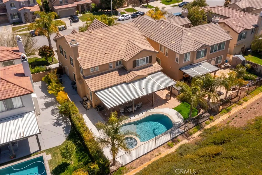 NEW POOL! NO DIRECT REAR NEIGHBORS! LOW HOA! Welcome to your spacious sanctuary in the heart of Canyon Hills! This exquisite 5-bedroom, 3-full bath home offers abundant space for comfortable living and entertaining. Not one but TWO family rooms, a formal dining room, and a coffee bar nook. One bedroom and full bath located on the first floor, perfect for the in-laws or office retreat. This home has it all - including a QuiteCool House fan, vaulted ceilings, ample natural light, plantation shutters, and modern finishes throughout the only thing missing is YOU! Cook up a storm in your large kitchen (stainless steel appliances included!) that opens up to the family room and fireplace. Undoubtedly, you ll be enjoying summer time in the new in-ground (heated!) pool and spa, providing a refreshing oasis for relaxation and unwinding. Whether you're hosting gatherings or enjoying quiet moments, this home offers the perfect blend of comfort and convenience, ticking off all the boxes on your must-have list! Conveniently located near the community Sports Park, walking distance to the local elementary school, and only minutes from shopping!