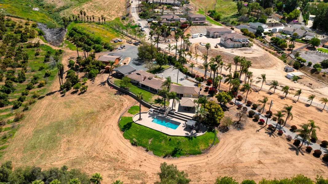 Views, Views, Views! This Arlington Heights Estate Home is a tucked away oasis overlooking the City of Riverside, orchards and a gorgeous pool with wrought iron fencing. This fully landscaped 3.86 acres is one to none in the bustling Riverside area. This estate has a fully finished out barn with updated electricity, GFI, fluorescent lighting, fan, attached carport and full length work table. Outside you will also find another car port, large work shed, outside bathroom and plenty of RV, car and trailer parking. The secured property has upgraded security system with cameras. Enter the estate through the automatic gate to a large ranch style estate home with a second fully finished garage, new tile roof, and completely refinished pool paved pool decking with newer equipment and plumbing along with beautiful patio covers with built in BBQ perfect for entertaining. Inside you will find three bedrooms three baths, family dining area, large living area with fireplace and sliding glass doors that open to views of the city and orchards.