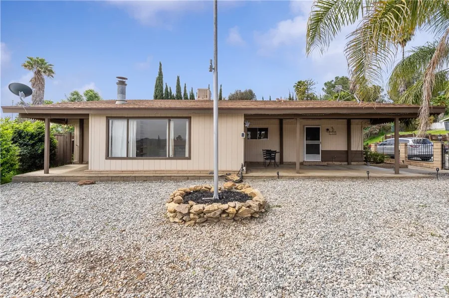 Look no further here is your new home in the Gavilin hills. Once you arrive you will see your large, private corner lot with views of the hills all around. You can relax on your cozy porch and enjoy the view. When you enter the home you will enter into your spacious living room and dining room. Your spacious kitchen with breakfast bar and lots of storage opens into the family room. Next to the family room you will find a large room with a fireplace and private entrance from the outside, this room can be used as another family room or can be converted into a third bedroom if desired (you would need to add a door and closet, per title home is a 2 bedroom). The spacious master bedroom has an attached master bedroom with updated bathroom, there is a secondary bedroom and hall bathroom which has also been updated. There is also an inside laundry room. This home has had many recent upgrades including, new HVAC system, both bathrooms have been updated in 2024 with new vanities, fixtures and flooring, the bedrooms and family room have new carpet. There is a garage with a workshop and also another separate workshop perfect for storage or projects. The large backyard and driveway have plenty of room for all of your toys. Don't miss out on this amazing property! '