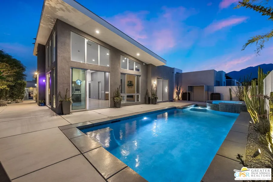 Introducing a breathtaking home in the highly sought-after Escena community, now available for you to claim as your own. This residence is distinguished by its lavish amenities and extensive upgrades, setting it apart in every way. Upon arrival, you are welcomed by a beautifully landscaped courtyard leading to a secluded, resort-inspired backyard. Head inside to find a cozy den on your left, while to the right, a magnificent great room unfolds, designed to impress and delight. The primary suite is a haven of luxury, featuring a bathroom with heated tile floors for a spa-like experience. The second bedroom, with its own exterior entrance and plumbing ready for a kitchen, is great for guests. This exquisite home showcases Porcelanosa flooring, custom paint, sophisticated lighting, high-end countertops, premium plumbing fixtures, elegant window treatments and state-of-the-art appliances. The precision and care extend even to the air-conditioned garage. Nestled on a desirable corner lot, this property offers unmatched privacy and serenity. Experience the ultimate in outdoor living with a refreshing outdoor shower and an opulent raised spa. Solar heating for the pool and spa, along with leased solar panels, ensure energy efficiency throughout. Don't let this unique chance slip away, own a piece of paradise in the elite Escena community.
