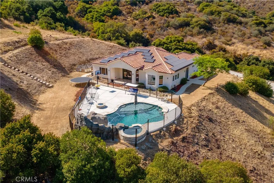 Must see video! Imagine yourself in this sprawling, picture-perfect property in the desirable community of La Cresta in West Murrieta. A private driveway leads you to this Eco Friendly estate home on an almost 6-acre parcel with one acre of meticulously landscaped grounds surrounded by mature Oak trees. Perched on a secluded hilltop overlooking the Bear Creek Golf course and the sparkling city lights of Murrieta/Temecula Valley. This energy efficient home is located in the prestigious equestrian community of La Cresta, at the base of the Santa Rosa Ecological Park, this family friendly home is in the #1 school district in Riverside and with jaw dropping views of the nearby mountain ranges. The luxurious pool, spa, slide, grotto, firepit and security fencing were built in 2022 and are ideal for stargazing, bird watching, and taking in the great outdoors. This single-story, eco-friendly home has a modern farmhouse design with massive bright and airy windows, allowing natural light to flow in every direction. A welcoming, open concept family room, kitchen with stainless steel appliances, Carrera Quartz lined counters and center island, dining area with vaulted ceilings and accordion doors are perfect for California indoor-outdoor entertaining all year round for your family events and holidays. The layout of this home offers a bedroom and bathroom near the entry of the home perfect for guest or office space and the secluded primary suite is on one side of the home and two ample sized rooms are located just off the large bonus room off the kitchen. The 42 PAID OFF solar panels, 4 Tesla power walls and an EV charger, will set your mind at ease with zero electricity bill. A Brand new 80 Gallon water heater was just installed, and a Cannon American Eagle Gun Safe is also included. This home is a commuter s dream with close proximity to I-15 and 215 freeways for easy commutes to nearby LA, OC, SD, beaches, Big Bear Mountain and Old Town Temecula and Wineries. This home is near local malls and shopping centers. Come and see what La Cresta has in store for you!