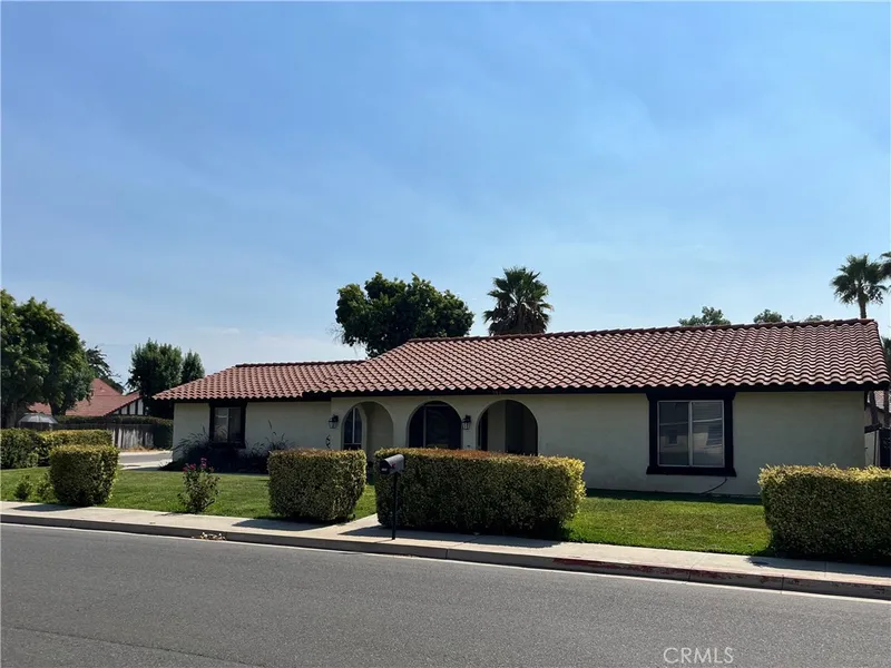 QUALITY 1 story home with 3 BR 1.75 BA. Well-maintained family home within walking distance to schools. Formal living room/dining room with large picture window featuring views of San Jacinto mountains from the COVERED front patio. Spacious Kitchen has window at the sink with view to backyard (keep the kids in sight) and is open to the family room w/FIREPLACE and slider to backyard. Master BR easily fits a king-sized bed and Master BA features separate toilet/shower room and his & hers closets with mirrored doors. Two other bedrooms on opposite side of hallway which face the backyard. You'll enjoy the GREEN grass in front and back on sprinklers to reduce maintenance. Large corner lot w/ 2 car garage and RV access. Stucco Wall fencing and Tile Roof add value and curb appeal. Lots of street parking available too for those family get-togethers.