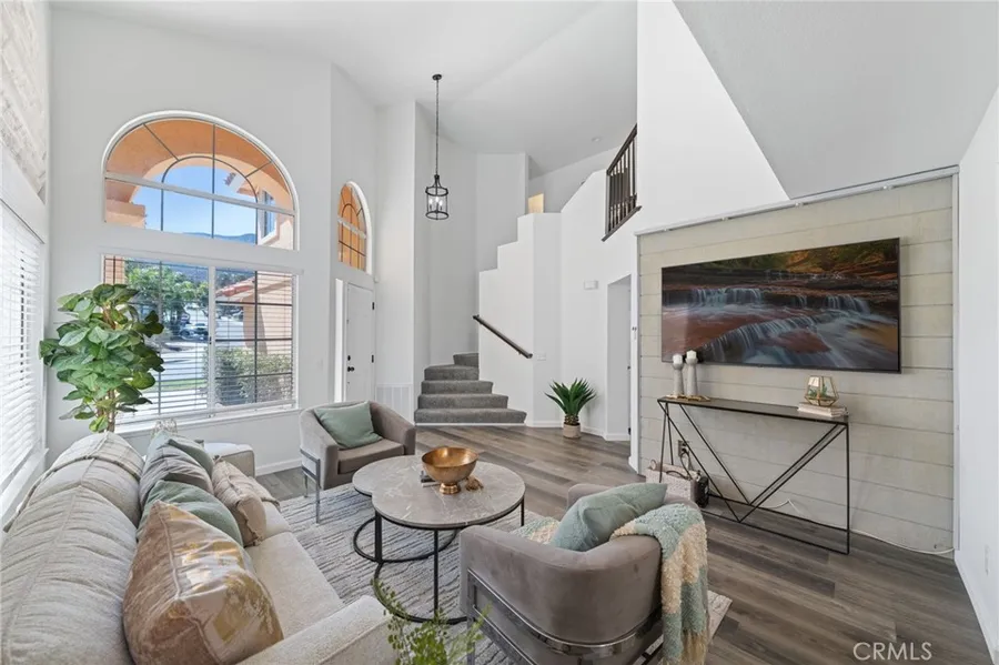 As you step inside, the luxury laminate hardwood floors on the main level create a seamless flow from room to room, enhancing the home's open, airy feel. The recently renovated kitchen is the heart of the home, featuring light-colored stone countertops, sleek cabinetry, and high-end stainless steel appliances. Ideal for culinary enthusiasts, the open layout ensures easy transitions between cooking, dining, and entertaining.