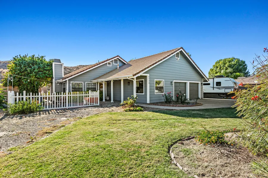 Discover the perfect blend of rustic elegance & modern convenience in this stunning ranch style modern farmhouse. The 1,872 SF home features 3 spacious bedrooms, 2 updated bathrooms & cozy living room with custom fireplace & soaring ceilings. Outside on your half acre property find a private pool & spa where you can relax after a day of adventure, including the unique opportunity to roam with the buffalo nearby. Step inside to find a stylish kitchen with white subway tile backsplash, Carrara marble style counters & stainless steel appliances that make cooking a delight. Custom lighting & french oak style flooring adds sophistication throughout the home, while contemporary bathrooms provide a luxurious touch. The home comes equipped with central AC & heating plus a whole house-fan system for energy & efficiency. The charming laundry room enhances everyday tasks adding character & practicality. Outside, enjoy enchanting sitting areas with bistro lighting & covered patio, perfect for gatherings or quiet evenings. Come home to your extended driveway leading to a large 2 car garage plus work area with additional RV parking, providing ample parking & storage. Embrace the charm & comfort of this exceptional property that blends the best of modern living with timeless farmhouse style.