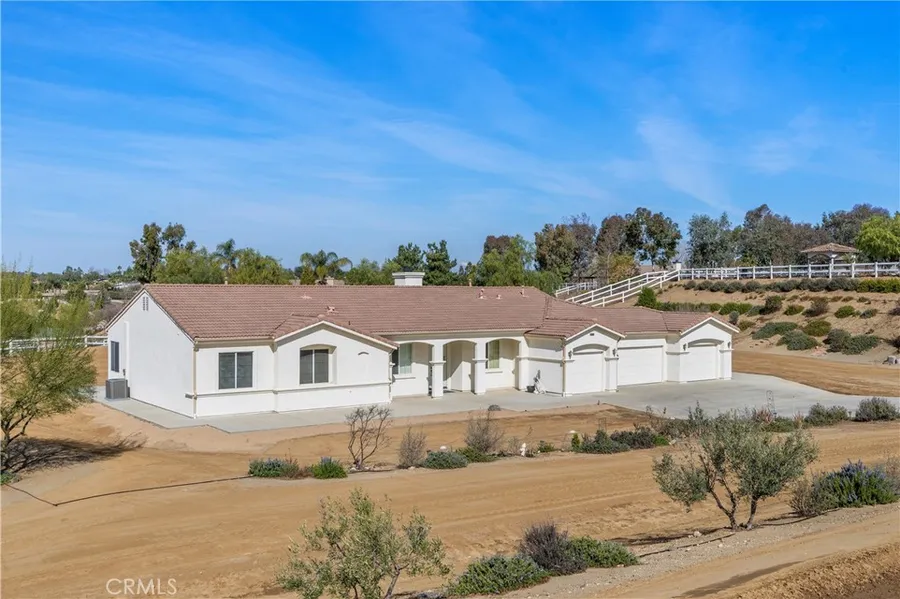 Stunning Turnkey Horse Property with Modern Upgrades and Private Yard. Welcome to this immaculate, recently painted 4-bedroom, 2.5-bath horse property, complete with a 4-bay attached garage. Nestled on a private, fully fenced lot, this home offers both luxury and practicality with 10-foot ceilings, an open floor plan, and abundant natural light throughout. Step into a grand entryway that leads to a formal living and dining room, perfect for entertaining. The upgraded kitchen boasts quartz countertops, a stylish tiled backsplash, and high-end appliances, including a Frigidaire 5-burner cooktop and double GE Profile ovens. The kitchen seamlessly flows into a spacious family room, centered around a cozy wood-burning fireplace ideal for family gatherings. The large primary suite features breathtaking views of the surrounding hills and includes an oversized bathroom with a luxurious soaking tub and a huge walk-in closet. Three additional generously-sized bedrooms share an updated hall bath, perfect for family or guests. Outside, enjoy your own private backyard oasis surrounded by eco-friendly, no herbicide- and pesticide-free landscaping. Mature trees like Museo Palo Verde, Wilsoni Olive, and California Juniper provide shade and beauty, while lavender, rosemary, and California native roses add color and fragrance to the outdoor space. The property opens directly to maintained horse trails that wind through the community, leading to Hartford Springs Park-a natural preserve offering unlimited riding opportunities. The energy-efficient home is equipped with state-of-the-art systems, including a new dual HVAC system (featuring a Goodman 3-ton 16 SEER condenser and a Lennox 3-ton 20 SEER heat pump), New Furnace, two attic fans with thermal switches, a Halo water filtration system, Solar Screens and Elfa storage solutions in the kitchen pantry, laundry room, and closets. Additional features include California Closets bookcases, rain gutters with a water diversion system, and more. With access to a full-size community equestrian center for events and training, this one-of-a-kind property is perfect for horse enthusiasts and those seeking a serene yet connected lifestyle. Don't miss your chance to own this exceptional home-schedule a tour today!