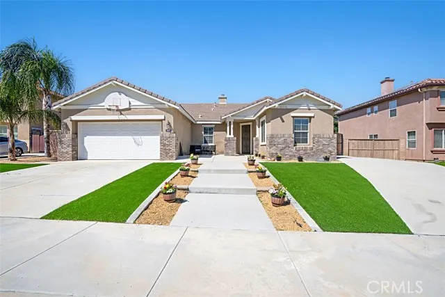 This single-story home boasts 4 bedrooms, 2.5 bathrooms, and a bonus room that can be used as an office or a potential 5th bedroom. The kitchen has been updated and has soft-close cabinets, stainless steel appliances, a range hood, a large island, and granite countertops. It opens to the family room, which features a cozy fireplace, a built-in entertainment cabinet, and surround sound speakers. The primary suite includes a large walk-in closet, dual sinks, and a shower with a separate tub. There are three additional bedrooms, one full bathroom, a half bathroom, and a bonus room that can be used for various purposes. The living room, dining room, and laundry room round out this very desirable and functional floor plan. Throughout most of the home, beautiful wood tile flooring is used. New carpet has been installed in the family room and master bedroom, and new paint throughout most of the interior. The home also has SOLAR and RV gated parking, and the backyard features a patio cover for outdoor gatherings and entertaining. It's conveniently located near shopping, freeways, and schools.