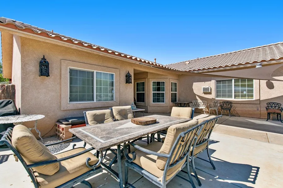 Nestled in the heart of Salton City, this well maintained residence offers an expansive 1,740 square feet of living space on a generous 9,478 square foot lot. While officially recorded as a three-bedroom, two-bathroom home, it features an additional fourth bedroom, providing ample space for family or guests.The inviting kitchen serves as the centerpiece of the home, boasting a large island adorned with granite countertops and a tasteful tile backsplash, perfect for culinary enthusiasts. Step outside to the spacious backyard, which offers ample room for a potential swimming pool. The covered patio provides a comfortable space for outdoor dining and family gatherings. Conveniently located near the Salton City Travel Plaza and the Red Earth Casino, this property combines comfort with accessibility, making it a prime choice for discerning buyers seeking both tranquility and convenience.