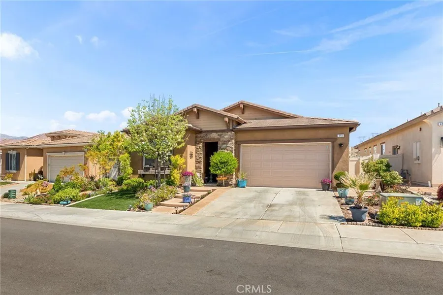 Solar Powered home Located in the 55+ Senior community of Four Seasons Beaumont. Views of the local hills and Mountains. Great curb appeal with the popular craftsman exterior with stacked stone accents, custom entry walk and artificial turf. This Ridgestone model has features: Granite kitchen counter tops and island, Stainless steel appliances, rich pecan finished cabinets, custom ceramic floor tile, large laundry room with sink and added cabinets. The rear yard, along with its views, has mature fruit tress, raised bed planters and a stamped concrete patio. The Four Seasons resort community includes a lodge with a resort style pool complex with cabanas and jacuzzi, grand ballroom, bistro, 50 seat movie theater, billiards room, full service salon, bocce ball courts, 4 tennis courts, 8 pickle ball courts, 9 hole putting green, horseshoe court, shuffle board courts, basketball courts, 2 lar...