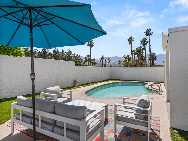 This south-facing, Mid-Century Modern-inspired home in the coveted Tamarisk area of Rancho Mirage has been impeccably maintained and thoughtfully upgraded. Since taking ownership, the current owners have completed a series of enhancements: a full kitchen remodel and reconfiguration featuring high-end Italian appliances, new quartz countertops, new cabinetry, and decorative tiled walls; installation of gorgeous new flooring throughout; upgraded interior lighting with most fixtures on dimmers; installation of five double-paned sliding glass doors along with multiple new window treatments; a new electrical panel; redesign of all bathrooms with new vanities, toilets, showers, fixtures, and exhaust fans, and fresh interior and exterior paint. The residence offers sweeping mountain vistas that can be enjoyed from both inside and out, an open-concept design, abundant natural light, and low-maintenance living with professionally installed desert scape and turf — ideal for either full-time or seasonal enjoyment. The historic Tamarisk area is celebrated for its notable architecture, relaxed lifestyle, and proximity to Tamarisk Country Club along with a variety of dining and shopping options.