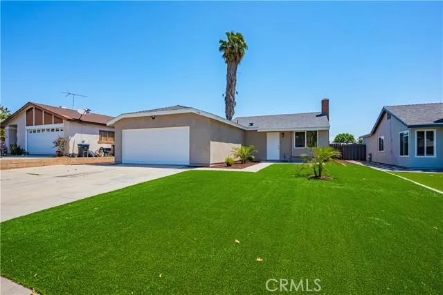 This beautifully remodeled 3-bedroom, 2-bath home is move-in ready with all the modern updates youve been looking for! The brand-new kitchen features quartz countertops, white shaker cabinets with soft-close drawers, stainless steel appliances, recessed lighting, and a deep modern bucket sinkperfect for cooking and entertaining. Gorgeous wood-style plank vinyl flooring runs throughout, and both bathrooms have been completely updated with stylish finishes. The home also has new double-pane vinyl windows and a brand-new roof for added peace of mind. House has been replumbed! Outside, the front yard is freshly landscaped with low-maintenance artificial turf, and the large backyard offers tons of space for relaxing, entertaining, or adding your personal touch. A drive thru garage to store the toys!