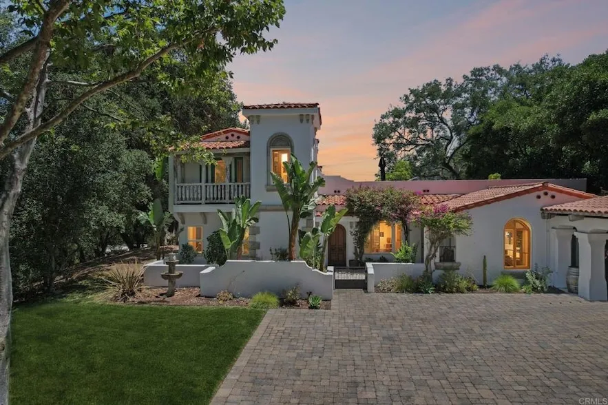 Imagine arriving at this breathtaking Spanish estate, where a heavy wrought iron & wood gate welcomes you into a world of timeless beauty & seclusion. As you wind through the driveway lined with olive & fruit orchards, you re embraced by the canopy of majestic old oaks. Walking the grounds feels like stepping into the pages of a design magazine every detail curated for visual charm & function. Bougainvillea cascades gracefully around the arched wooden front door, framing the entrance with vibrant color & creating a picture-perfect welcome for guests. The enchanting courtyard entry sets the tone, offers an ideal space to greet friends with the soft sounds of a bubbling fountain & the scent of lush garden blooms. Step inside, & you re greeted by authentic Mexican pavers underfoot & rich wood-beamed ceilings overhead every detail curated for warmth, character, & soul. A stunning arched ...