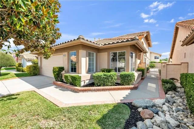 Lovely Muirfield model in Sun Lakes Country Club, a stunning 55+ community in Banning. This 3-bedroom, 2.5-bath home with loft and family room offers 1,846 sq. ft. of comfortable living. A double-door entry welcomes you into a bright, open floor plan with abundant natural light and freshly painted white walls. The spacious living and dining areas flow nicely for entertaining. The kitchen features ceramic tile flooring, updated painted cabinets, and appliances including the refrigerator. The downstairs primary suite is open and airy with a sliding door to the patio and an en-suite bathroom featuring dual sinks. Upstairs has been fully refreshed with all new carpet, paint, and ceiling fans in each room, along with two bedrooms, a full bath, and a loft area. Other highlights include mirrored closet doors, ample garage storage with built-in cabinets and attic ladder, a solid Alumawood patio cover, fresh exterior paint, new landscaping, and new carpet throughout the home. Sun Lakes Country Club offers resort-style living with two golf courses, three clubhouses (one with a full-service restaurant and lounge), three swimming pools including an indoor pool, tennis and bocce ball courts, and countless clubs and social activities. The perfect blend of comfort and community.