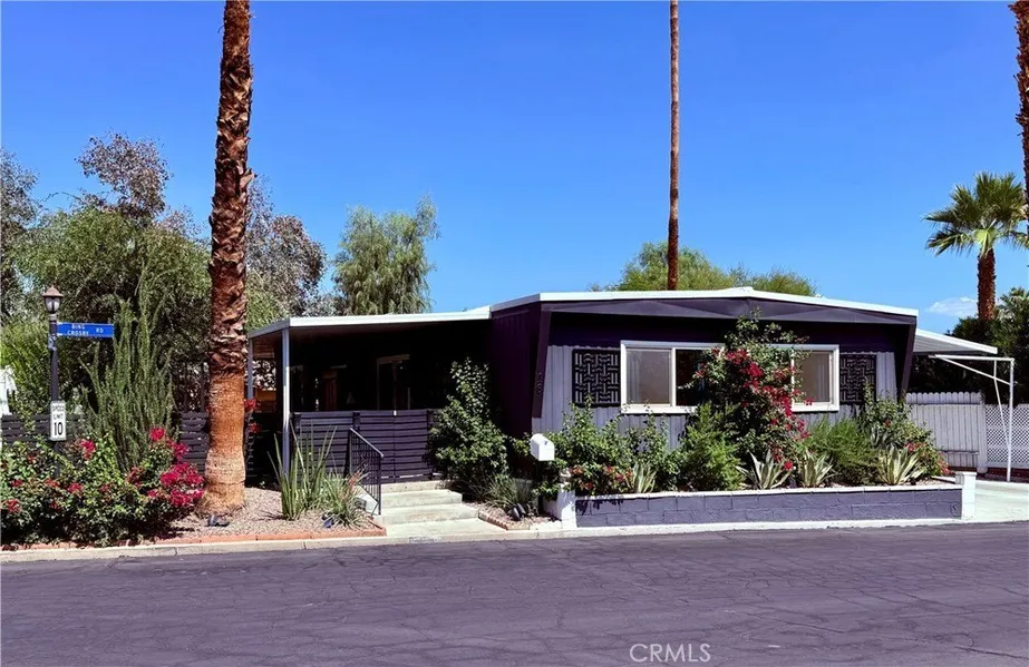 Beautiful property located in the esteemed Historic Blue Skies Village, a community originally created by iconic figures Bing Crosby, Burns, Allen, and Jack Benny. This is truly unique neighborhood. This home has been completely remodeled to the highest standards. Situated on expansive, park-like grounds, this property stands out as a gem within a gated 55+ community. Key Features Include: - Low HOA Fees: $360 per month, covering internet, trash, cable, internet, and water services. - Ownership Advantage: You own the land outright, resulting in property taxes based solely on land value. Gourmet Chef’s Kitchen: with upscale appliances, brand-new cabinetry, and elegant quartz countertops, Dual-pane windows, new wide plank flooring throughout, and tiled bathrooms. The home has an Expansive Outdoor Space: A gated, beautifully landscaped garden wraps around the home, providing ample room for gatherings while enjoying breathtaking mountain views and sun exposure throughout the day. The property has more than three covered parking spots. Residents enjoy access to a saltwater community pool and spa, a fitness center, and a meeting hall designed by renowned mid-century architect William F. Cody. Prime Location: Blue Skies Village is adjacent to the Butler-Adams trail, ideal for morning walks, and surrounded by multimillion-dollar neighborhoods. Additionally, it is just a short distance from Eisenhower Hospital, Palm Desert and Palm Springs.