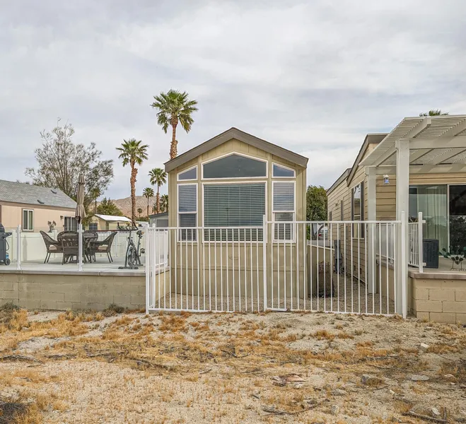 Spectacular and prime location close to the Clubhouse with this 2006 ~400 sq. ft. Laurel Crest Park Model home with sweeping and unobstructed views of Mt. San Jacinto. Come find your vacation getaway to the sun and desert with this immaculate, efficient, and well-maintained 1 bedroom, 1 bath, travertine flooring throughout, modern finishes, and volume ceilings. Sunbathe on your deck surrounded by glass railing for viewing pleasure to take in all the magnificent beauty and desert scenery, additionally, a finished shed with possible washer/dryer connection and a new HVAC system. This jewel is in the premiere Caliente Springs 55+ Resort and offers top notch amenities to soothe your every desire including mineral hot spring fed pool and spas, fitness center, 9-hole golf course, 8-pickleball courts, tennis courts, full laundry facilities, library, chapel services all in a fun and active commu...