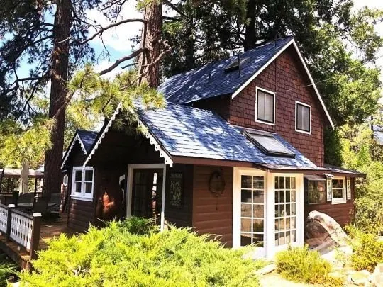 This Enchanting Storybook Swiss Chalet type mountain home boast of unique vintage charm in a prime Idyllwild neighborhood and a short distance to our village. The home has plenty of space including two separate independent units. One on the lower level of the main house with its own entrance and deck and the other a detached 1 bedroom,1 bathroom cottage, with a kitchen, living room, garage, play house and a fence in yard. All perfect for full time living and for rentals. The main house has three bedrooms, three bathrooms, living room, dining room and a cozy breakfast nook with floor to ceiling windows to enjoy the outdoors while sipping on your morning coffee. The vintage woodwork over the rock fire place is stunning. The private back deck has a peaceful setting amongst beautiful trees and boulders on a 3/4 acre. Lots of possibilities for this charming home.