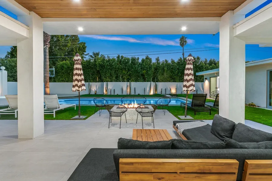 Welcome to your dream getaway in Palm Desert! This stunning contemporary modern pool home is available for flexible month-to-month leasing and offers the perfect blend of luxury, space, and entertainment. With 4 spacious bedrooms, 4 full bathrooms, and accommodations for up to 11 guests, this is the ideal desert escape for families, groups, or corporate retreats. Step inside to an open, light-filled floorplan featuring modern finishes and a bonus room complete with a full bar and stylish sitting area-perfect for entertaining or relaxing in style. Outside, the resort-style backyard is a true showstopper, boasting a massive covered patio with wood-planked ceiling, fully equipped outdoor kitchen, and a sparkling pool and spa with a generous tanning shelf for lounging under the sun. The fun continues with a basketball court, putting green, ping pong table, and pool table-everything you need ...
