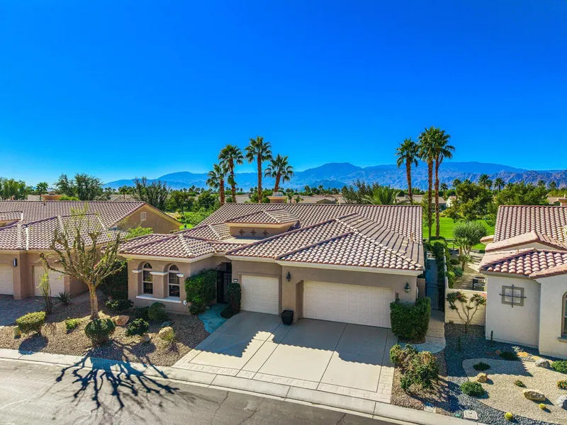This stunning tropical-themed luxury retreat in Sun City Shadow Hills invites you to relax, entertain, and rejuvenate in style. Step through a custom wrought-iron gate into a lush courtyard with soothing water feature and guest casita, then enter a light-filled great room that flows effortlessly to the pool and mountain-view patio beyond. Every detail has been thoughtfully reimagined-from warm bamboo floors and rich wood cabinetry to a sleek island kitchen and a spa-inspired primary suite. Outdoors, you'll find your own private resort complete with waterfalls, spa, firepit, and sweeping fairway vistas. Offered turnkey furnished at $8,000/month, this home is perfect for discerning seasonal guests seeking an elevated desert experience.