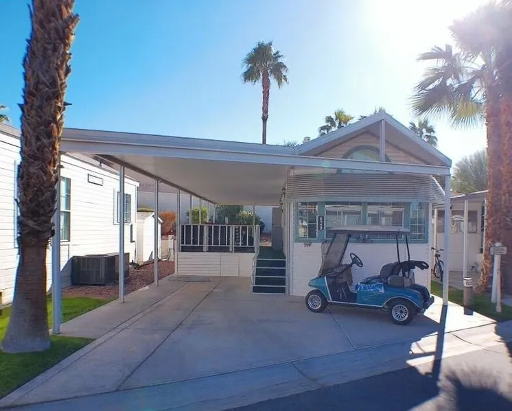 This Hallmark Park Model has upgrades through-out. Clean and located on the back East Wall with a shaded covered deck to enjoy. A washer/dryer is located in the back shed. Well-appointed and is a pleasure to show. Located in a quiet area of the park. The Golf Cart is negotiable outside of escrow. Ready to Move in, just bring your personal effects.