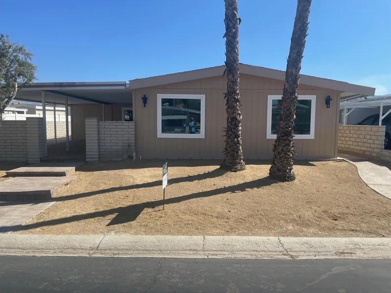 Unbelievable remodeled triple wide in Palm Desert Greens Country Club. This home has all new baths, kitchen, floors, inside walls and ceilings, doors, appliances, windows, roof, plumbing and electrical. This home is like new, quartz counter tops, stainless appliances, new 9' kitchen island, open concept living/dining rooms, plus rare 3 bedrooms and three baths all completely remodeled. Palm Desert Greens has 18 hole golf course that is included with ownership, pro shop, Clubhouse, restaurant, 3 pools/spas and fitness center, pickleball, tennis, bocce ball. Seller is also offering a lease option to purchase for one year with $3950/month with 50% going of the rent going toward the purchase price or down payment. Seller financing is also available. Call listing agent for particulars.