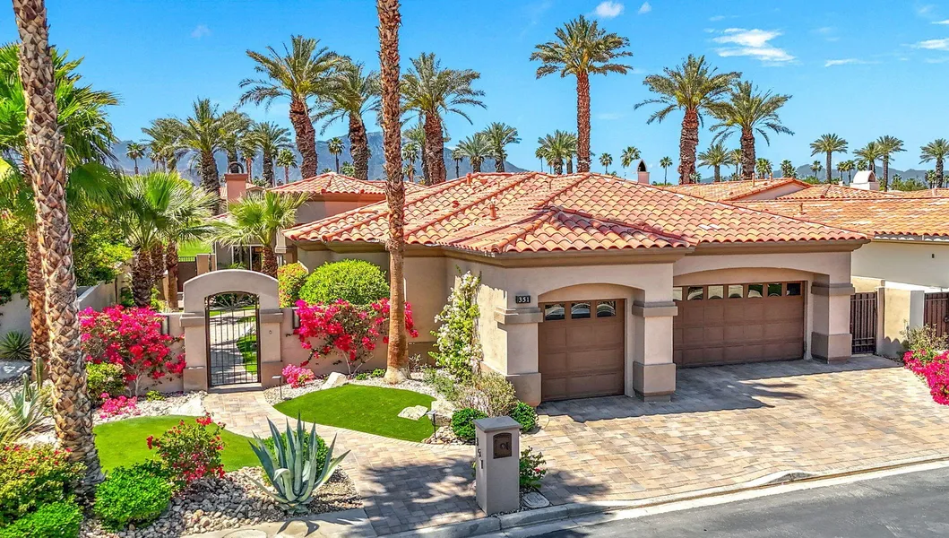 GOLF MEMBERSHIP AVAILABLE, no wait. SOUTH & WEST sunset vistas - Santa Rosa and San Jacinto Mountains. LUXURY Redefined: 12-ft ceilings + expansive sliding glass panels, Restoration Hardware-inspired neutral palette. GOURMET kitchen: Top-tier appliances, custom cabinetry, spacious pantry. Enjoy intimate dinners or festive gatherings. 3 ENSUITE RETREATS. Primary + Powder Toto washlets. YEAR-ROUND COMFORT: 42-panel OWNED solar (net-zero bills); 3 new ACs + whole home air purification. Motorized shades + garage AC. OUTDOOR SANCTUARY: Therapeutic saltwater spa + custom fire pit + BBQ island + motorized retractable awnings + misters. Membership includes all club amenities - Pickleball, Tennis, Fitness, Bocce, 3 Restaurants. SCHEDULE YOUR PRIVATE TOUR.