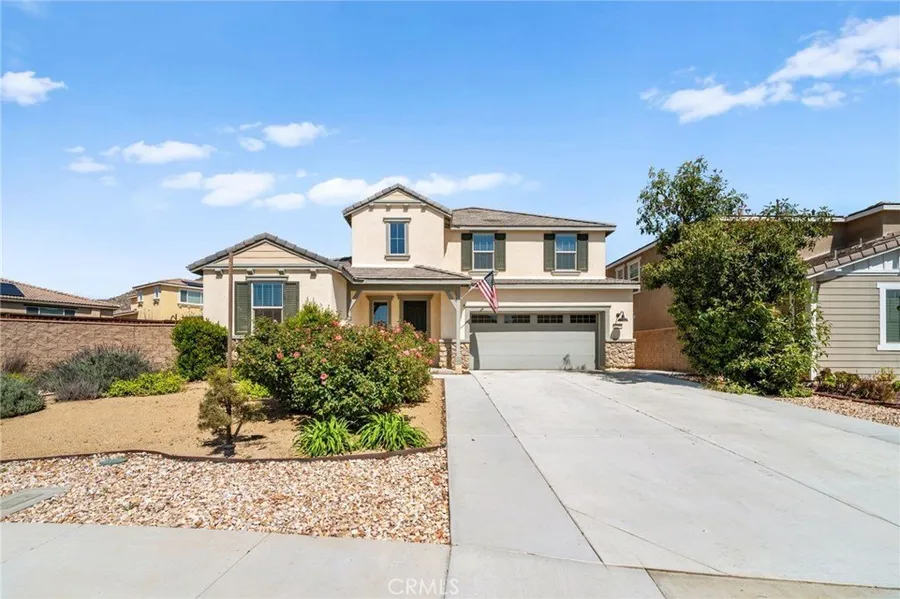 Welcome to your dream home in the prestigious Heritage Lake community of Menifee! Tucked away at the end of a peaceful cul-de-sac, this beautifully upgraded home offers one of the largest lots in the neighborhood, providing exceptional space, privacy, and versatility. Upon entering, you are greeted by a grand formal entry with soaring two-story ceilings and an abundance of natural light. The open-concept floor plan creates a warm and inviting atmosphere that flows seamlessly throughout the home. At the heart of the home is a stunning gourmet kitchen, featuring high-end stainless-steel appliances, a spacious center island, double ovens, a built-in range, and a walk-in pantry. This space effortlessly connects to the dining area and family room, creating the perfect environment for both entertaining and relaxing with loved ones. The thoughtfully designed floor-plan includes a full bedroom and bathroom on the main level, ideal for guests or multi-generational living. Upstairs, you'll discover a spacious loft, two additional bedrooms, a full bathroom, and a well-appointed laundry room with ample storage. The large primary suite features mountain views and a relaxing, spa-inspired bathroom with a walk-in shower, soaking tub, dual sinks, and a walk-in closet. The backyard is built for entertaining, featuring stamped concrete, a full-length Alumna-wood patio cover with ceiling fans, and plenty of space to add a pool, outdoor kitchen, sports court, or anything your imagination can envision. Additional highlights include a whole-house WiFi WAP system for seamless connectivity, energy-efficient solar panels, a Quiet-Cool attic fan, and a direct-access garage with built-in shelving for added convenience. The home is also enhanced with gorgeous new luxury vinyl plank flooring and modern fixtures throughout. Enjoy the many resort-style amenities of Heritage Lake, including a private 25-acre lake with paddle boats and catch-and-release fishing, two Jr. Olympic-sized pools, a splash pad, multiple playgrounds, sport courts, a fitness trail with outdoor exercise equipment, a rentable clubhouse, and year-round community events. You'll love the peaceful setting and the close proximity to shopping, dining, schools, and easy freeway access. This home offers an incredible blend of space, style, and an unbeatable lifestyle!